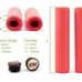 - Bez wyżłobień i nadruków – gładka powierzchnia i plastyczna pianka silikonowa dopasowują się do dłoni, po czym wracają do pierwotnej formy. Gripy nawet po długim czasie użytkowania wyglądają jak nowe.